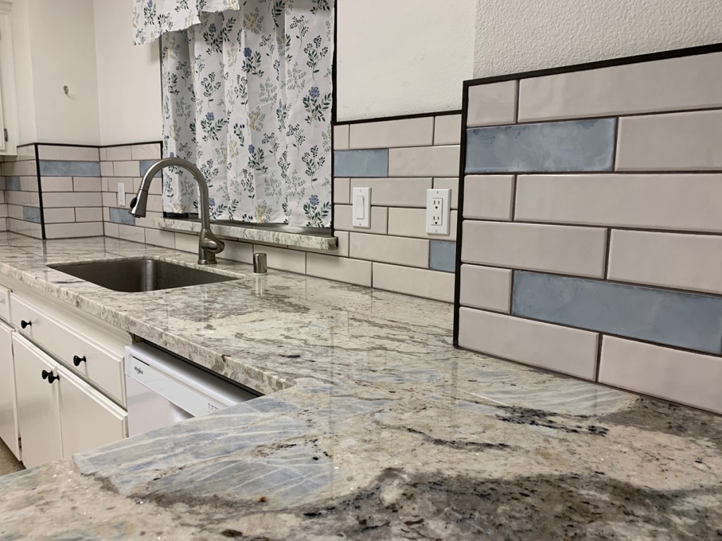 The photos below show a kitchen countertop and tile replacement completed in March 2025 in Santa Maria. RG’s handled the removal of the old tile countertops and backsplash, created a template for the replacement stone and installed plywood underlayment, shaped the granite purchased from Flooring Liquidators of Arroyo Grande, and handled the installation of the countertops, new sink and garbage disposal, and the new tile on the walls.